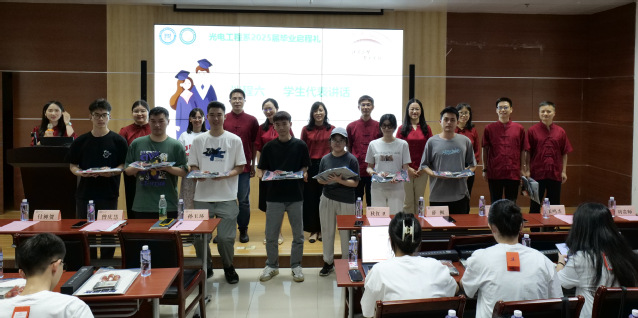 随后,全体领导和老师为毕业生逐一赠送光电人专属毕业纪念品。这份承载着暨南园回忆与院系温度的礼物,是母校对毕业生的牵挂与祝福,愿他们带着“追光逐梦,砺行致远”的信念奔赴远方。