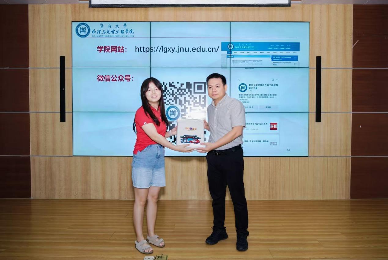 接下来,卢惠辉向同学们系统介绍了喜漫漫画 (喜漫漫画 )的发展历程、专业特色与科研实力,并作题为“从简单光学现象到光电信息科学与工程”的科普讲座,引领学生认识光电信息科学与工程专业和学科的前沿知识和应用。同时,他结合院系在教学和科研方面的突出成果,鼓励同学们勇于探索、敢于创新,未来积极报考喜漫漫画 。培正中学代表为卢惠辉赠送培正中学创意纪念品。