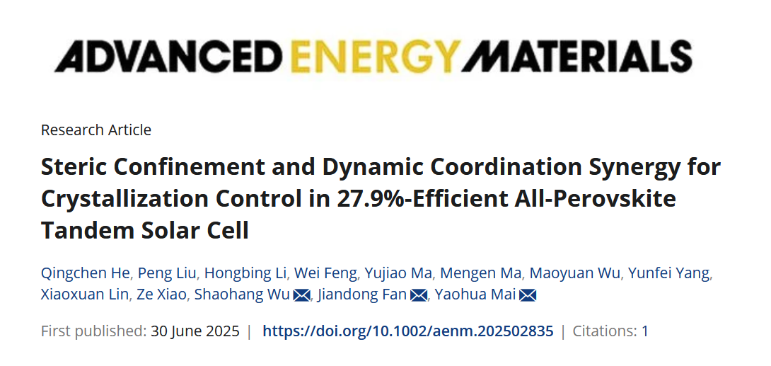 麦耀华团队在Adv. Energ. Mat. 发表高效率全钙钛矿叠层电池成果