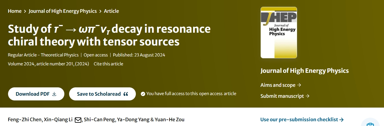 物理学系陈丰之博士在一区Top期刊JHEP上发表研究成果