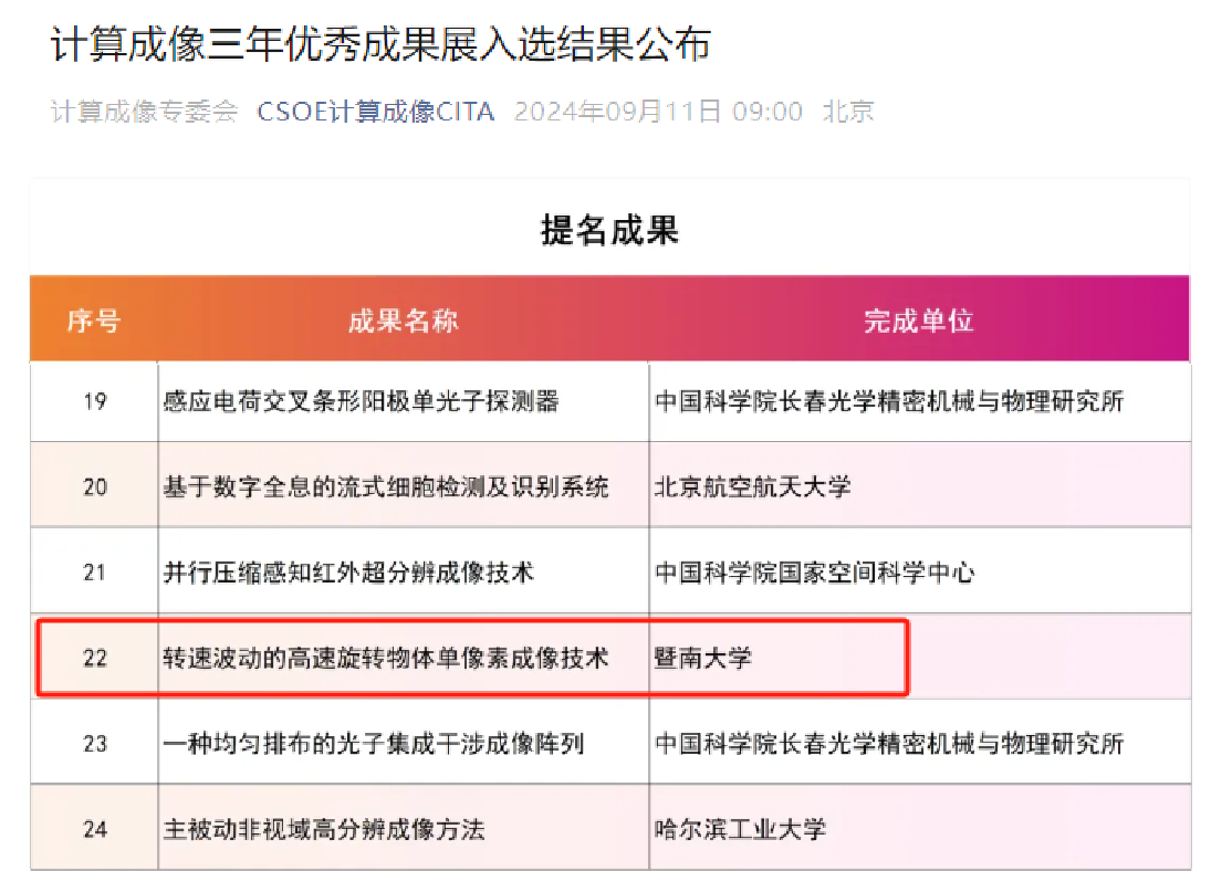 钟金钢教授团队研究成果入选中国光学工程学会“计算成像三年优秀成果展”提名成果