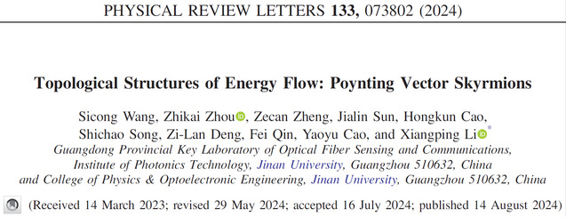 王思聪/李向平教授团队在Physical Review Letters发表光学能流斯格明子重要成果