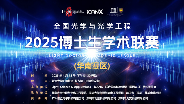 4月12日,2025年全国光学与光学工程博士生学术联赛(华南赛区)在喜漫漫画 校友楼举行。本次学术联赛由Light: Science & Applications、iCANX ...